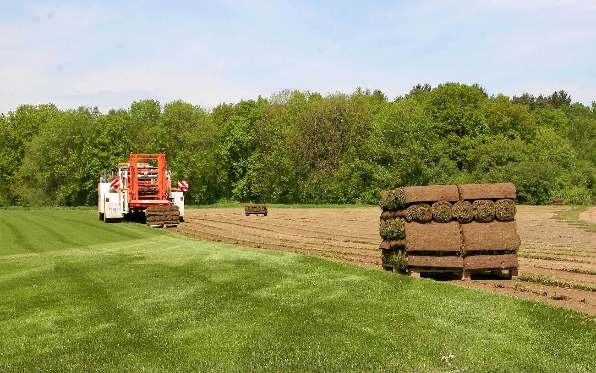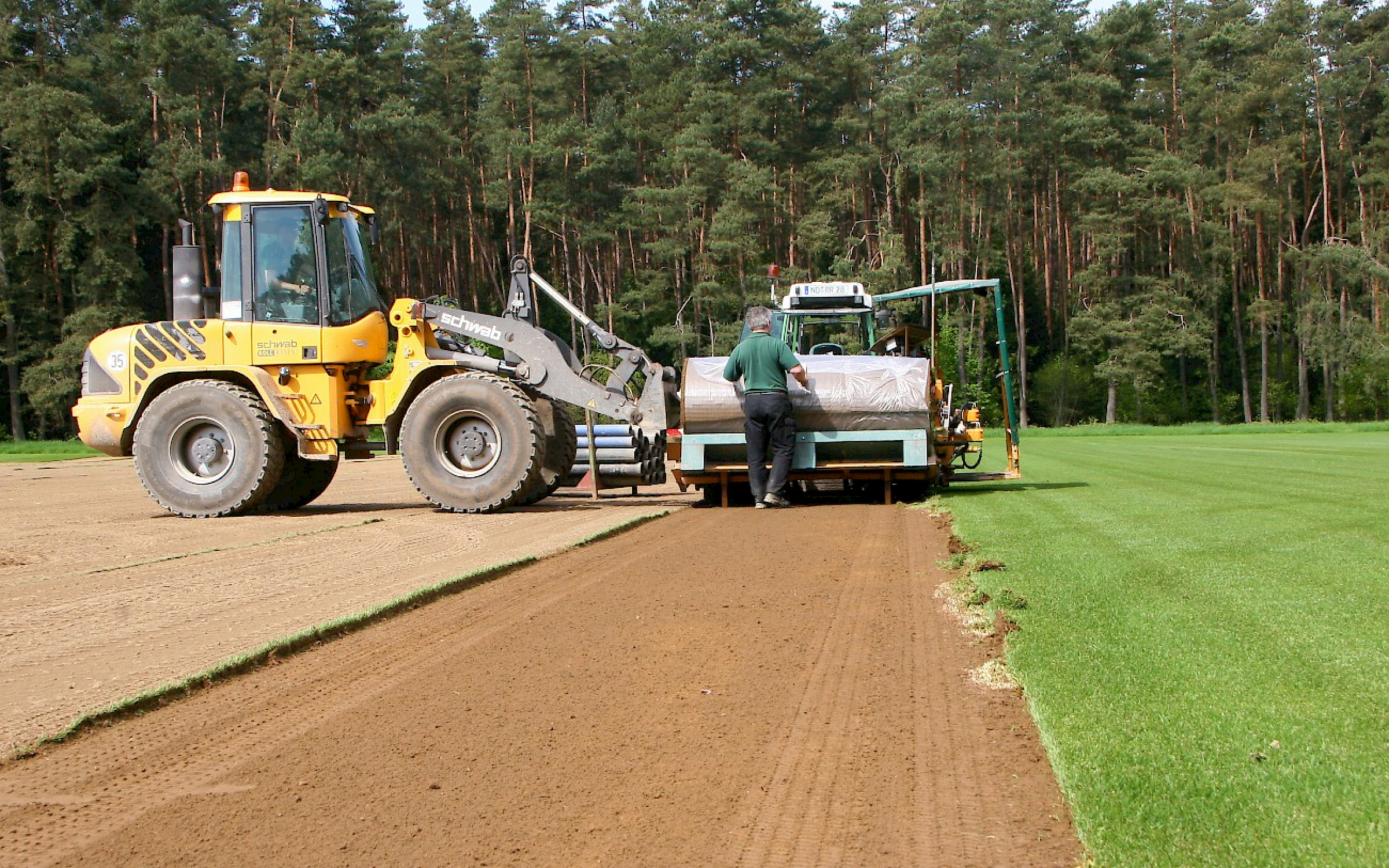 Dobler Gartendesign war zu Besuch bei einem der größten Rollrasenproduzenten Deutschlands, der Firma Schwab Rollrasen. Hier wird auf über 270 ha Fläche Rollrasen hergestellt. Rollrasen gewinnt vorallem in den Privatgärten immer mehr an Bedeutung. So wird der Garten innerhalb eines Tages satt grün und langes Warten auf den perfekten Rasen gehört der Vergangenheit an. Für uns war es interresant, die Produktion von Rollrasen, welcher auch in den von uns geplanten Gärten häufig eingesetzt wird, hautnah miterleben zu können. Zudem konnten wir uns über die neusten Trends und Produkte wie zum Beispiel die Wildblumenwiese als Rollrasen informieren.