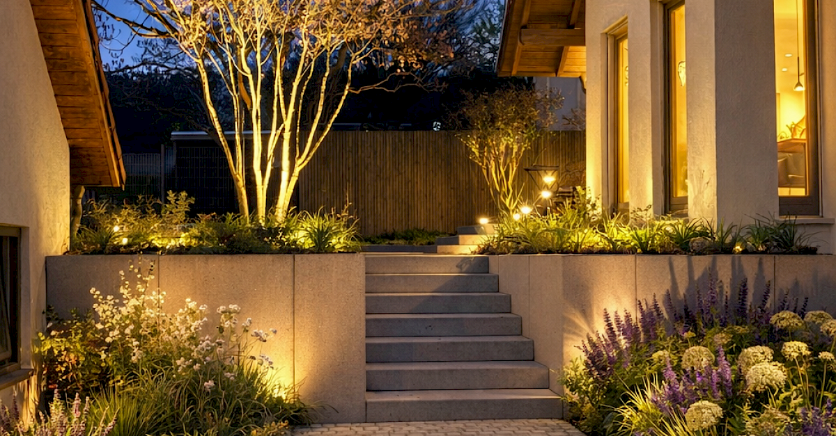 Mit einem stimmigen Lichtkonzept wird der Garten auch am Abend zum Lebensraum – ideal für Terrassen, Sitzplätze und Wege.