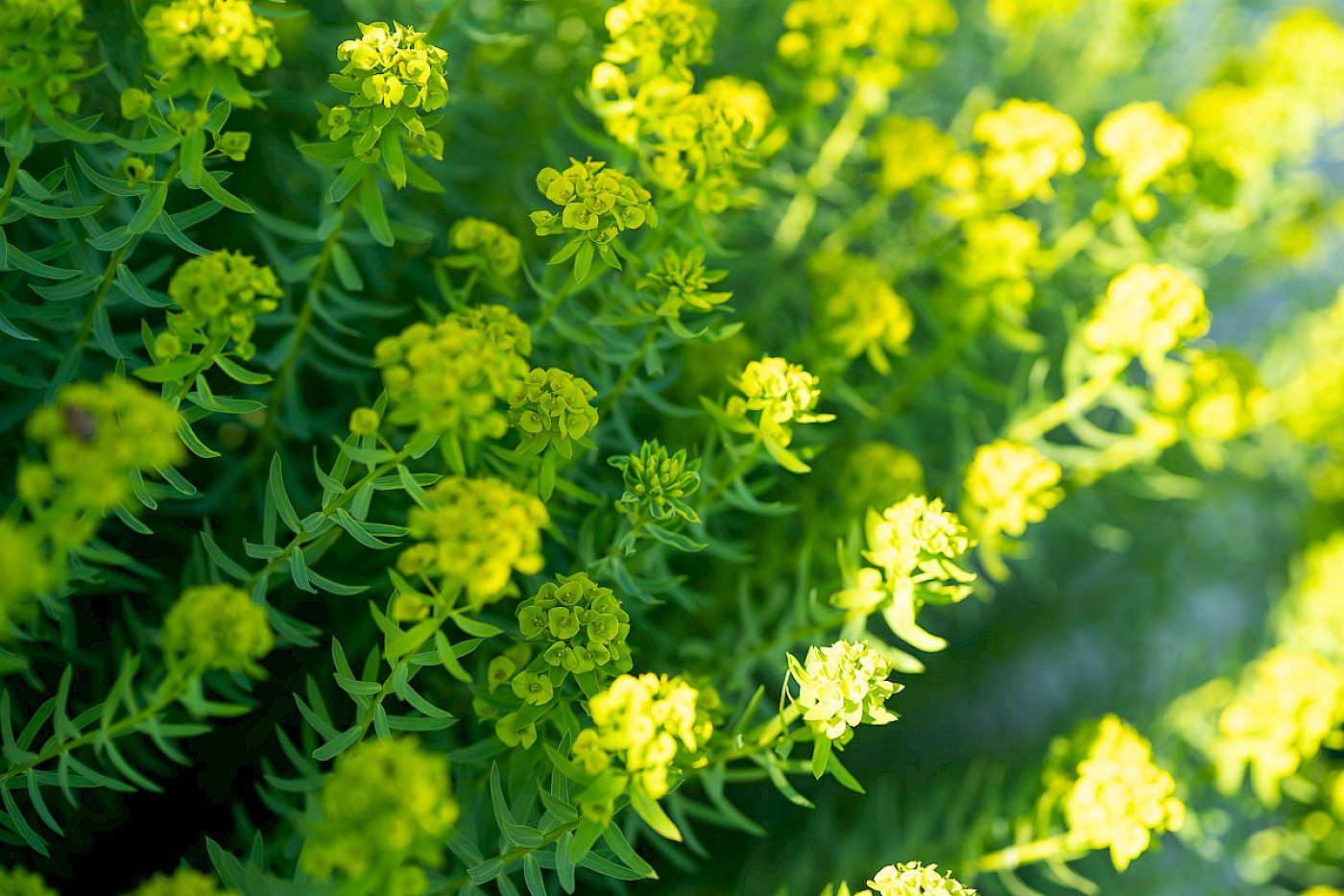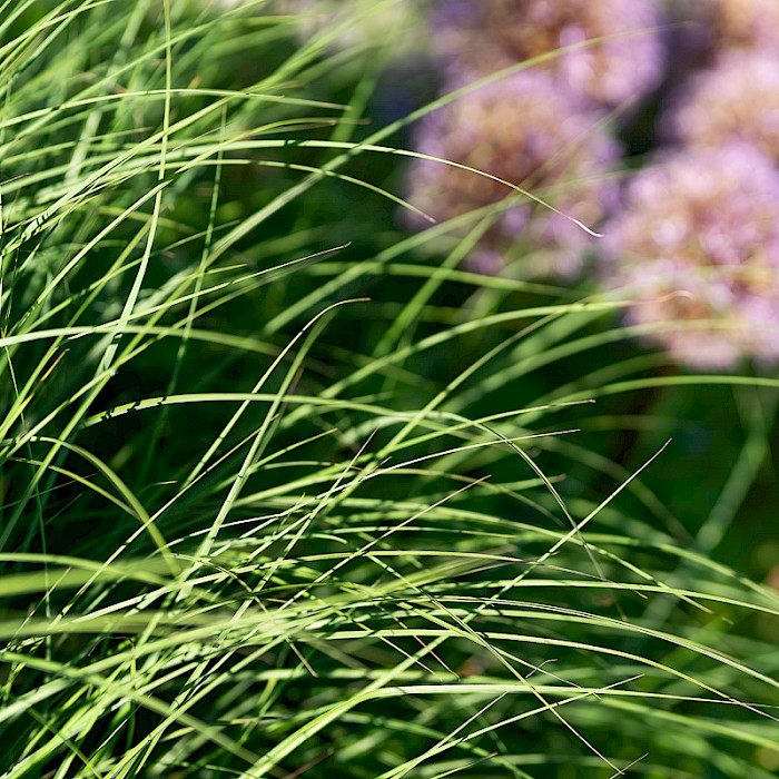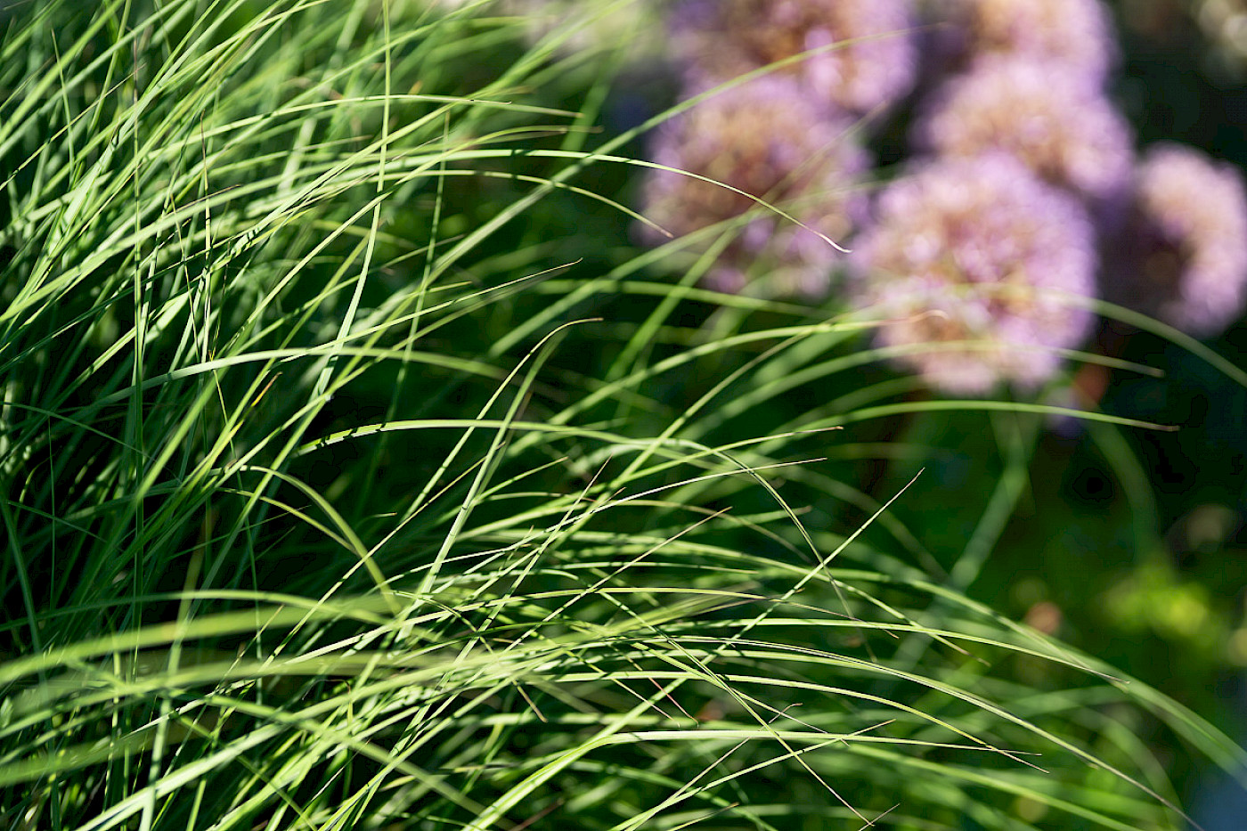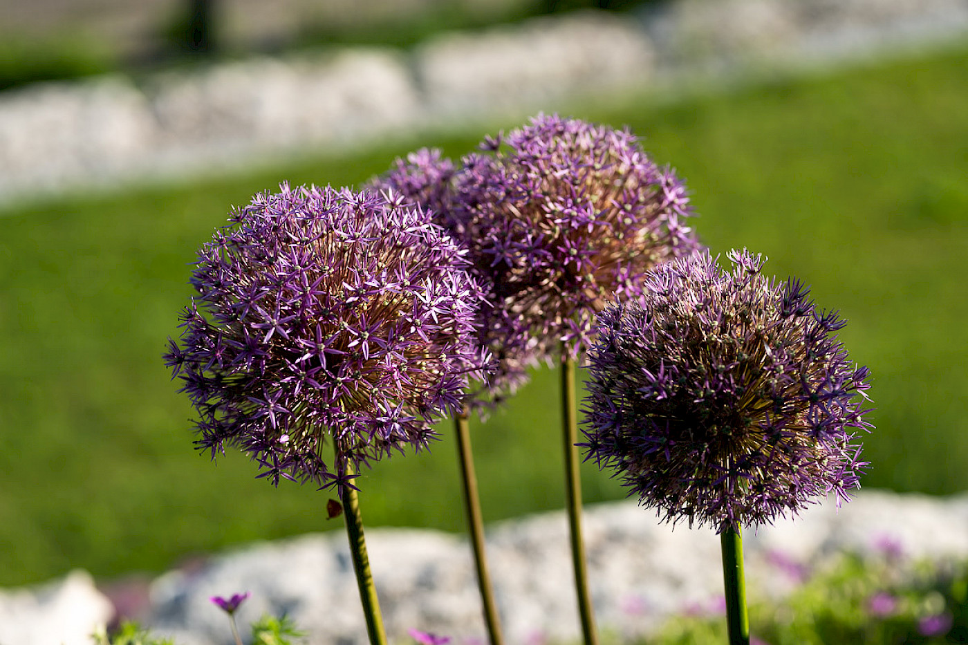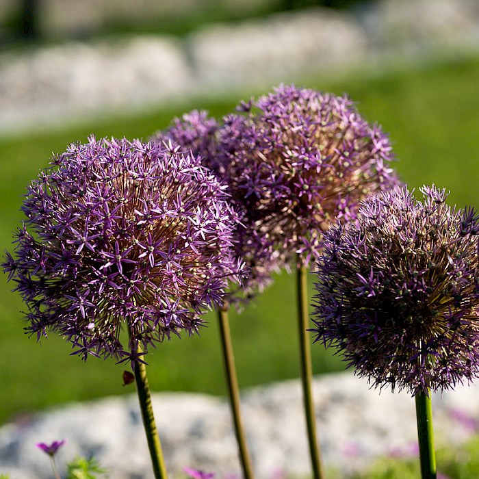 Neugestaltung eines Hanggartens mit Natursteinmauern aus Jura. Bepflanzung mit verschiedenen Gehölzen und pflegeleichten Stauden wie Geranium wallichianum 'Rozanne'.